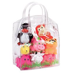 Collect a forest full of adorable Animal Squirters! This fun-in-the-tub set comes with eight colorful squirting bath toys, all packaged in a vinyl zip bag for easy storage. Animals include a penguin, monkey, pig, cow, hippo and more.