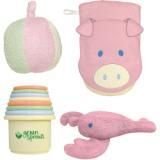 The I-Play Bath Set is BPA, PVC and phthalate free! Different sizes and colors keep your baby playing in and out of the bath! Cups fit together for easy storage. PVC-free and phthalate free Polypropylene. Set includes 8 stackable cups; organic cotton bath ball; organic bath puppet; and a Splash toy